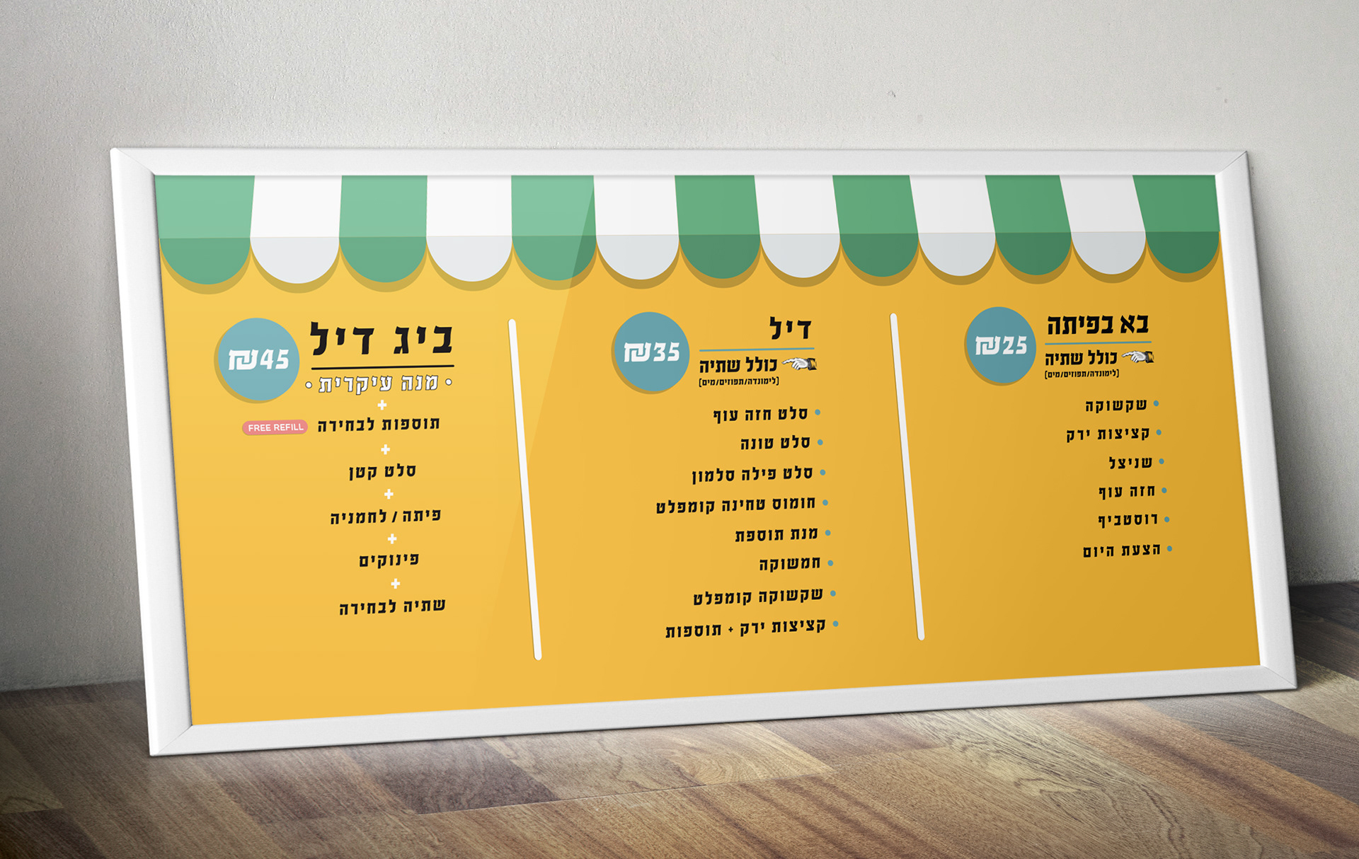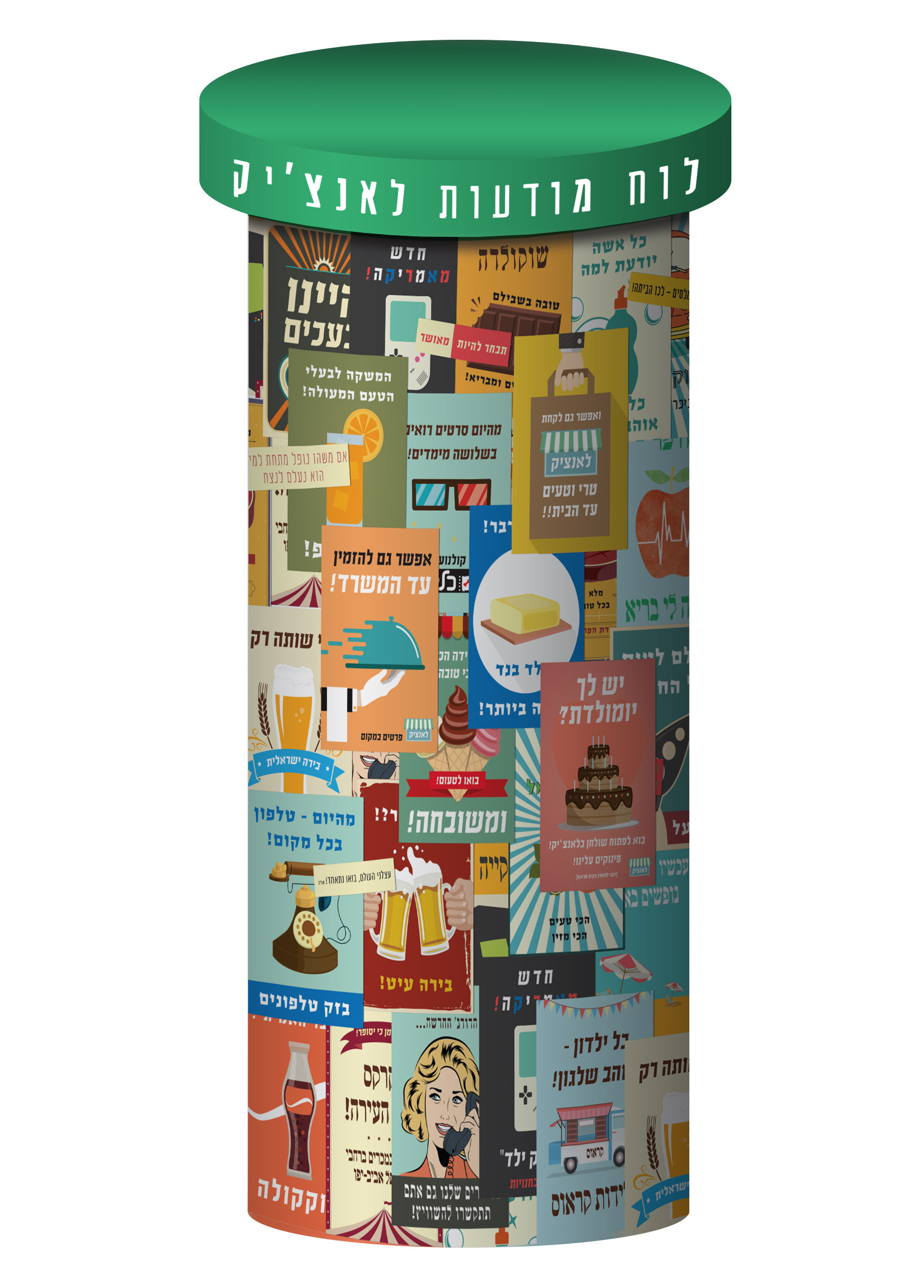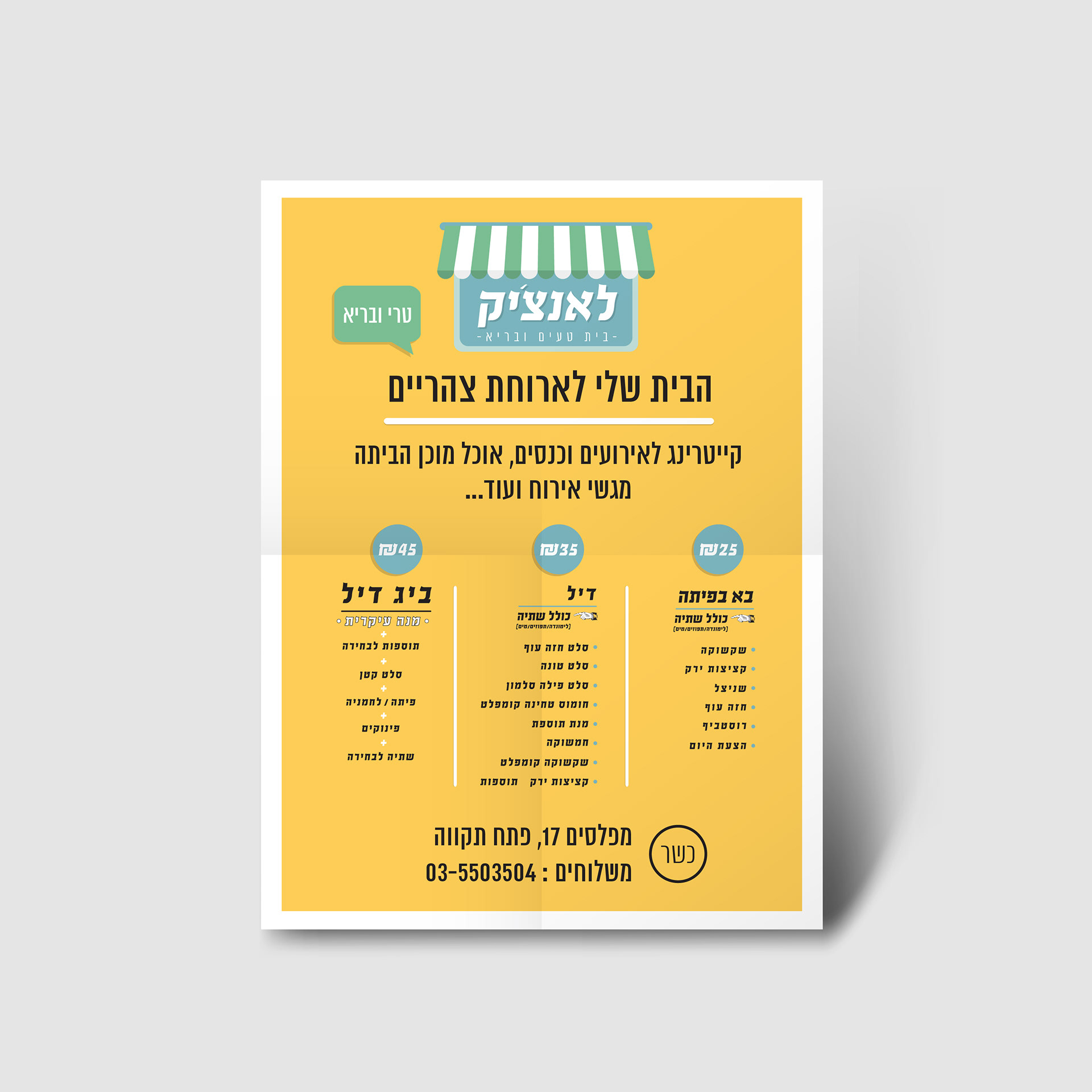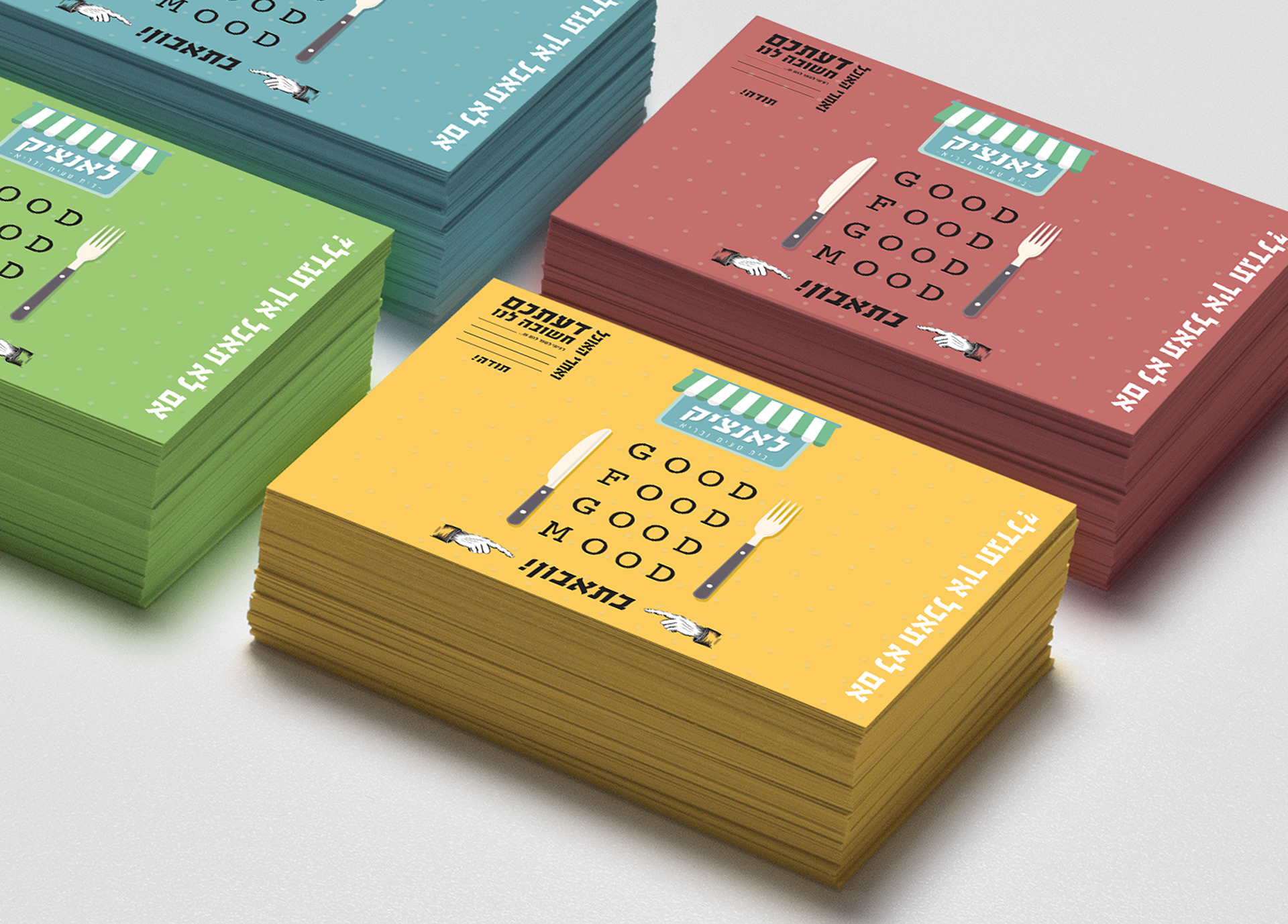 Branding for Lunchik, a diner with a colourful, Israeli, retro look to it meant to be the ultimate lunch break for the hard working people in the Hi-Tech industry near Petach-Tikva, ISRAEL.