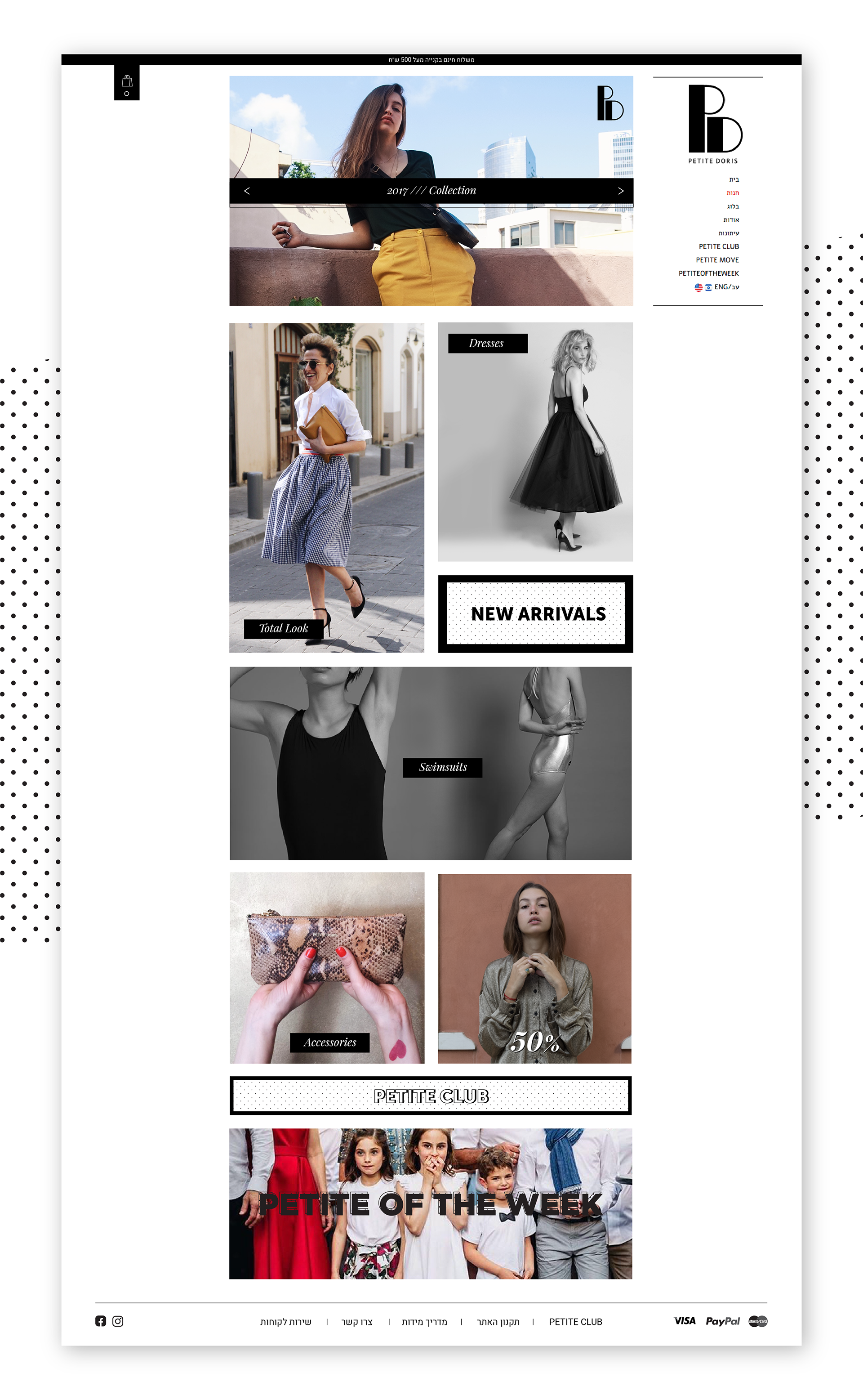 HomePage for The Israeli Fashion brand PETITE DORIS. founded in 2015 by Dorin Attias and Sasson Kedem, two fashion icons.